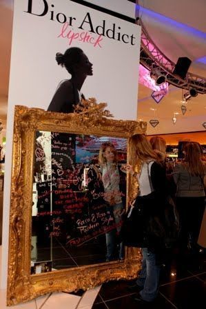 Y, después de probar la barra de labios, dejamos nuestro beso y nuestra firma en un espejo que se había expuesto a modo de libro de visitas para dejar nuestra huella en el evento.