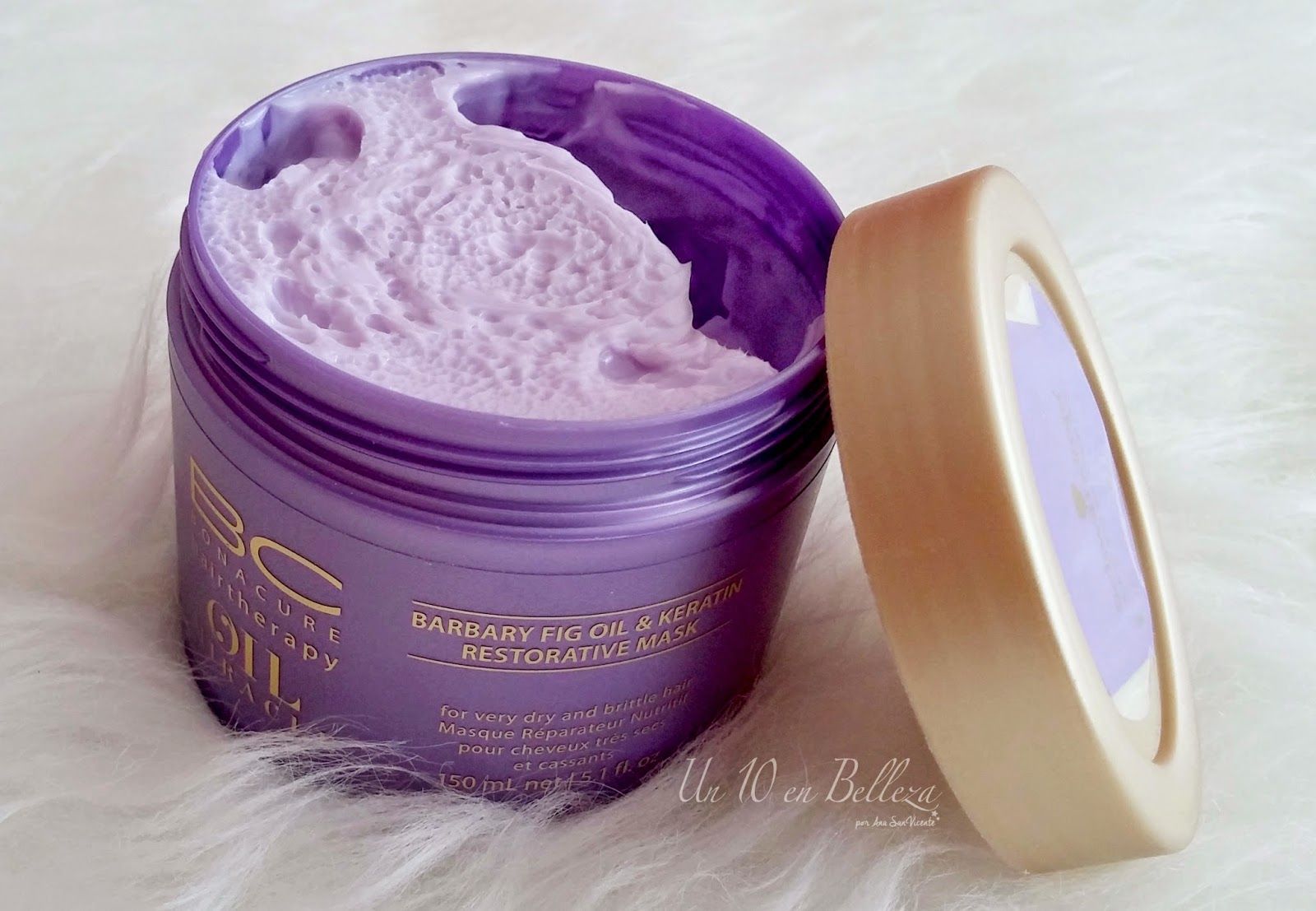 – BC Miracle Barbary Fig Oil and Micro Keratin Mascarilla Restauradora con textura de manteca que se funde y regenera el cabello apagado, seco o dañado.